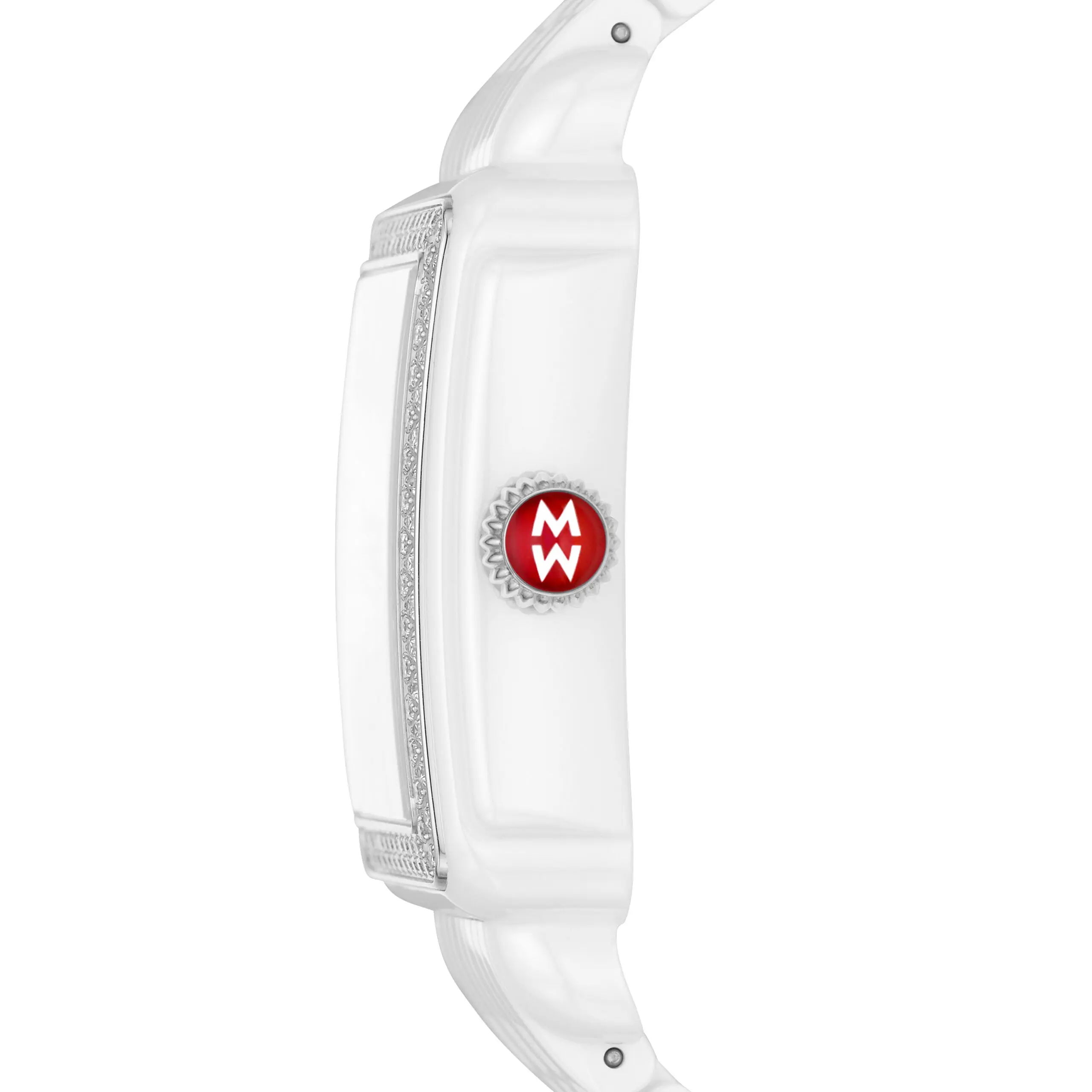 The gorgeous Michele Deco Madison White Ceramic Diamond Watch features a beautifully crafted case, surrounded by a diamond-set bezel that adds a touch of glamour. The white ceramic bracelet is elegant, smooth and sleek, providing both comfort and style. With a mother-of-pearl dial and sparkling diamond hour markers, this watch is designed to catch the eye while maintaining an air of refined elegance and sophistication.