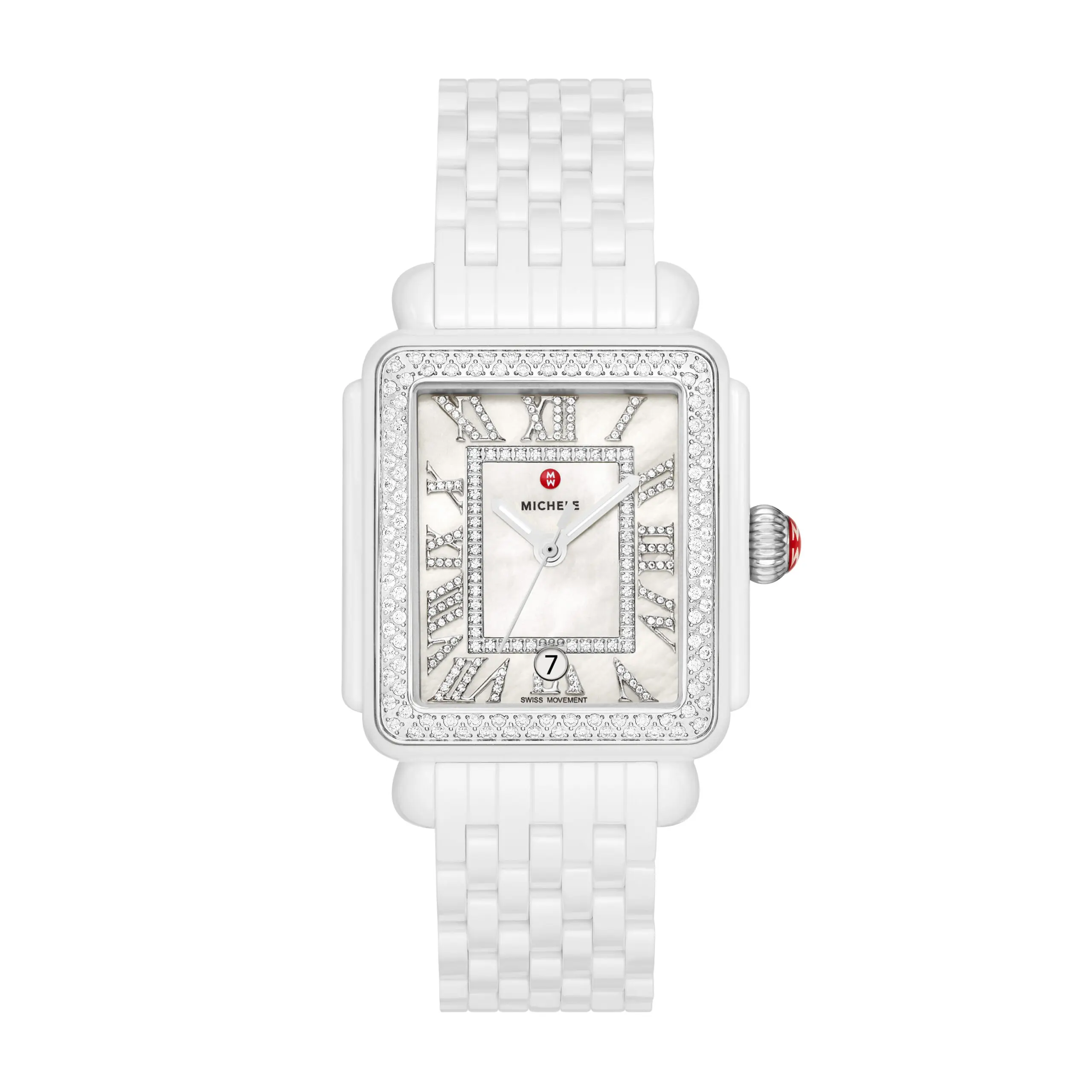 Discover the Michele Deco Madison White Ceramic Diamond Watch at Nasr Jewelers Denton, where style meets sophistication.